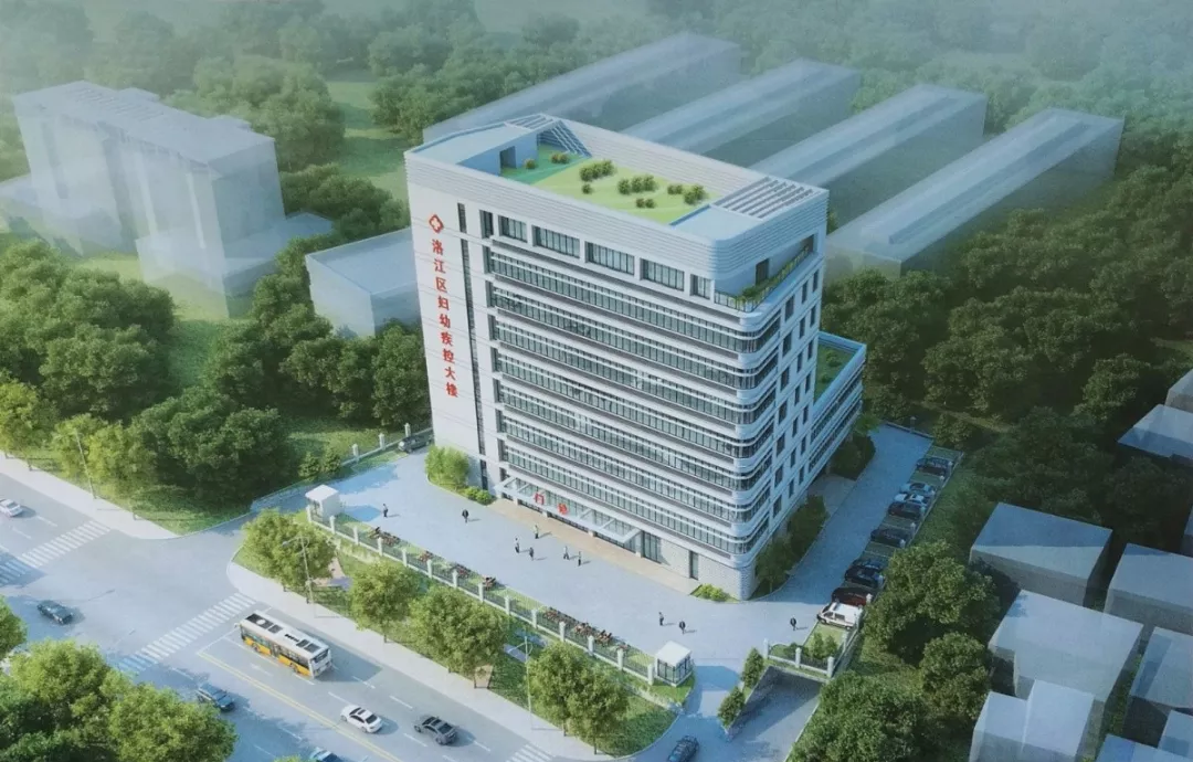 洛江区妇幼疾控综合业务用房大楼由9层主楼及4层裙房组成,总建筑面积约 14636㎡。
