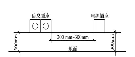 工作区(一般属非永久性的)是放置应用系统终端设备的地方。一个工作区的服务面积对办公型的建筑一般可按 5 ~ 10m2估算。为避免信息插座与电源插座之间的电磁干扰,采用如图 2所示的布置方式。