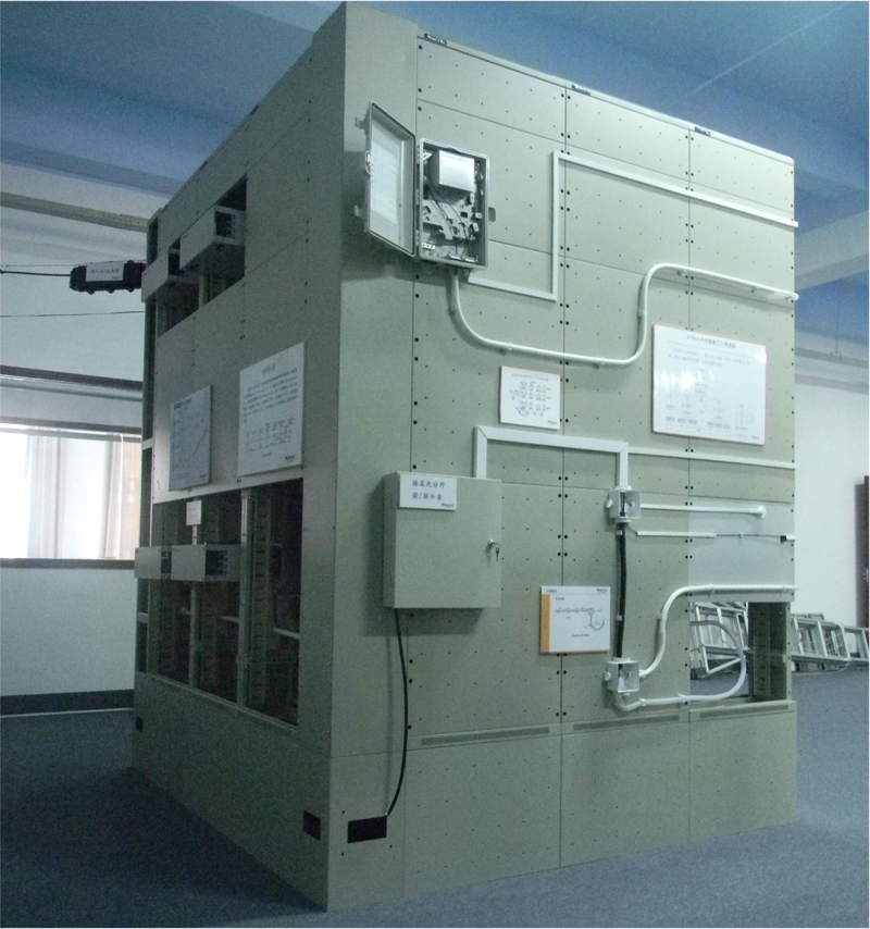 北讯(NORTEC)FTTH实训室由三个部份组成:1、FTTH展示单元,包括产品实物展示柜、FTTH原理及结构图、安装施工示意图、实训教材资料和视频光盘等。2、FTTH基本技能训练单元,以FTTH光纤系统实训箱、公共建筑光纤系统实训箱、光纤链路箱、网络设备箱为主组成FTTH实训装置,实现FTTH基本技能实训。3、FTTH工程综合实训单元,通过模拟建筑墙体,构建光纤到户模型,开展FTTH系统工程规划、设计、施工等实训。